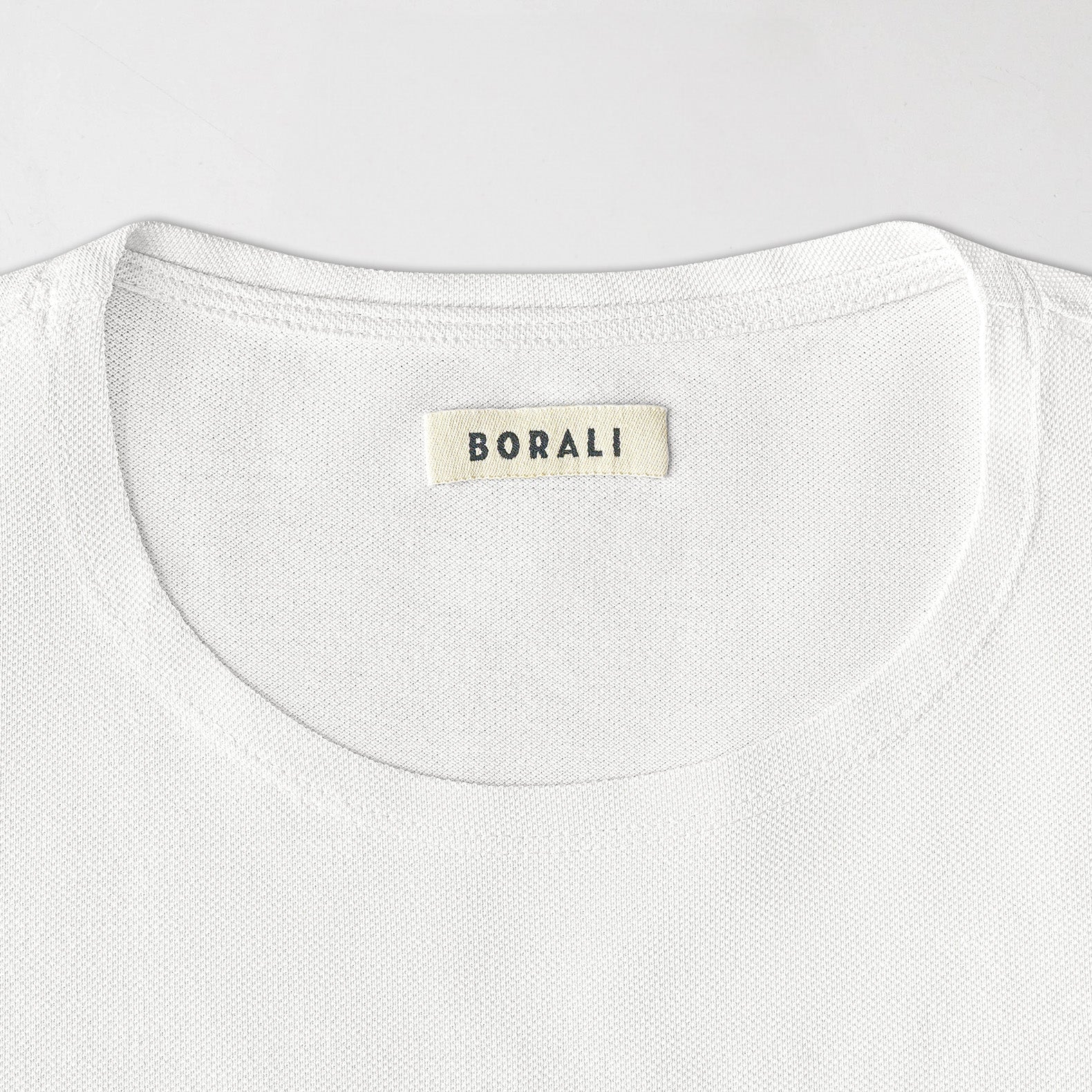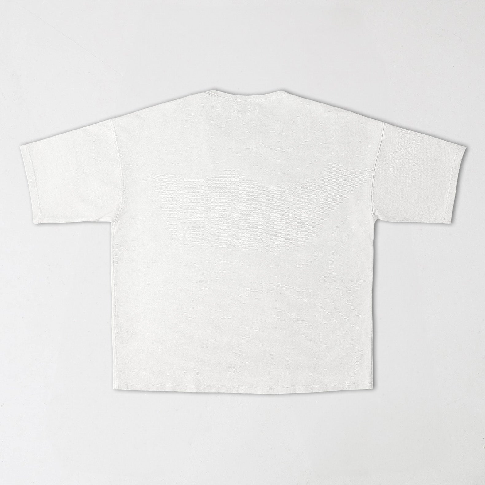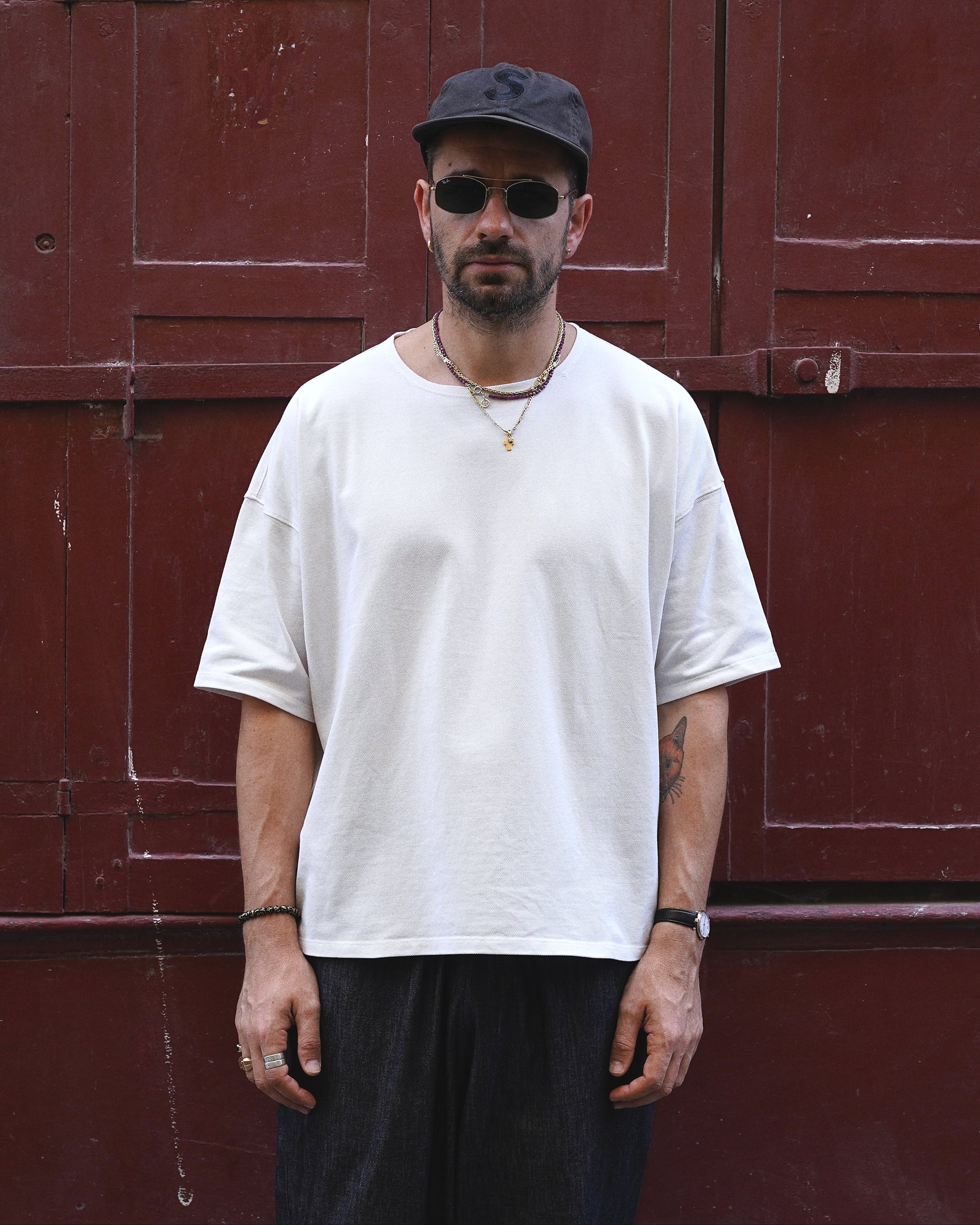 The Easy-T is our first top, drawing inspiration from the classic T-shirt, the Russian sailor shirt, and the polo. It features a generous cut — somewhere between loose fit and oversized — with carefully balanced length and drop-shoulder construction, designed to be worn just as easily with our high-waisted jeans as with wide-leg trousers for a more relaxed look.